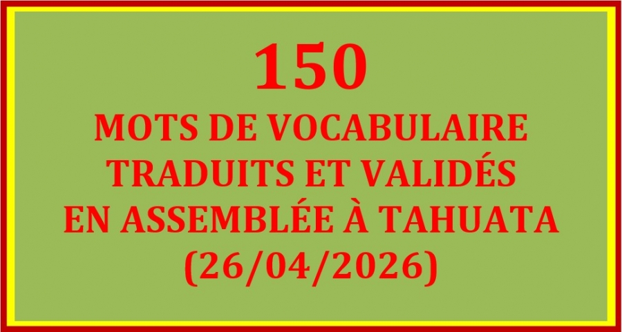 TABLEAU DES 150 MOTS VALIDÉS À L’ASSEMBLÉE D’AVRIL 2026 À TAHUATA